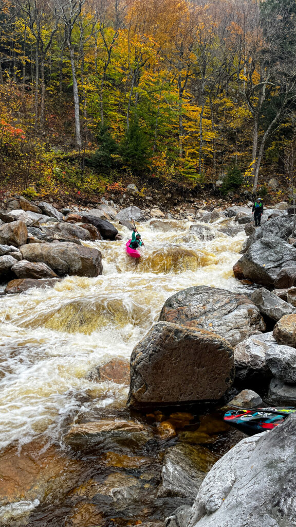 While virtually all rivers across the state saw some changes as a result of the summer weather, perhaps none experienced more consecutive and impactful events than the Middlebury. The drainage from Middlebury Gap down through Ripton and East Middlebury saw no less than 3 historic flood events all within a one month span. The Middlebury river itself experienced dramatic changes, with significant rearranging of some of the biggest rapids of the run (below the gorge). The van sized-boulder perched well out of the water at Tester flushed into the pool below, the often portaged “Your Mom” transformed into a unremarkable read and run boulder garden, and the takeout rapid shifted with each event, from an amazing in-your-face whiteout to a potentially pinny boulder bash and back again. Spring of 2024 will likely continue this rapid’s evolution.
