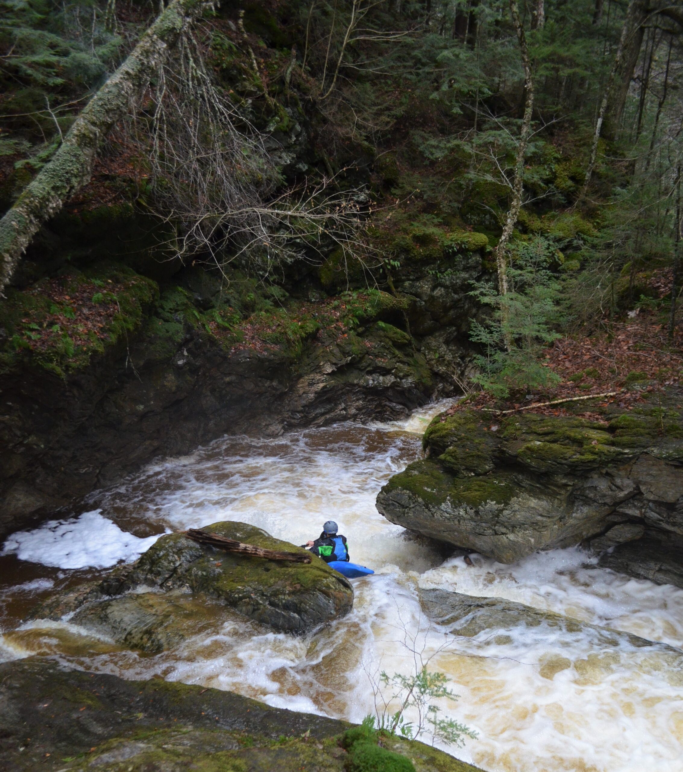 The creek has been paddled from the Bolton Valley Ski Resort parking lot down to the Potholes which locals spent around five hours. I highly recommend putting in below the culvert where the road crosses the river. You can go upstream if you want by putting in somewhere around “The Ponds” as there are some mini gorges up there that require significant scouting and portages. The drops in the upper gorge are fun, involved and all have some level of added danger. At the bottom of the run be aware of the Bolton Potholes, a popular set of teacup waterfalls near the confluence of the Winooski. They have been paddled but not at the water levels that you’re looking for to paddle the rest of Joiner.