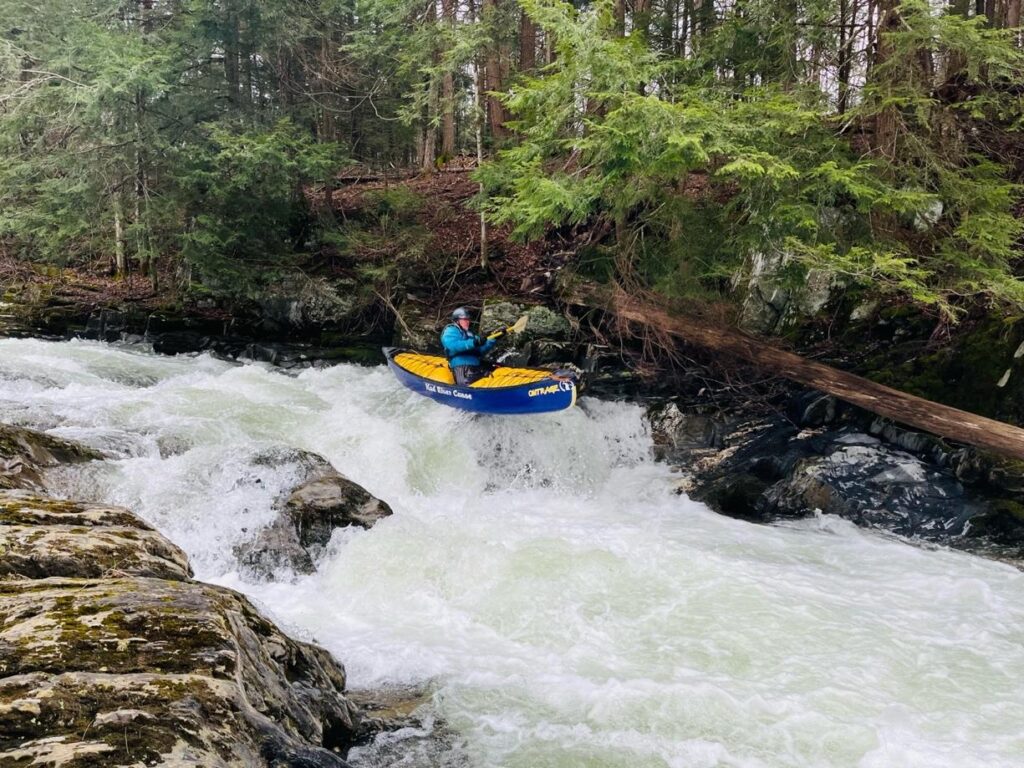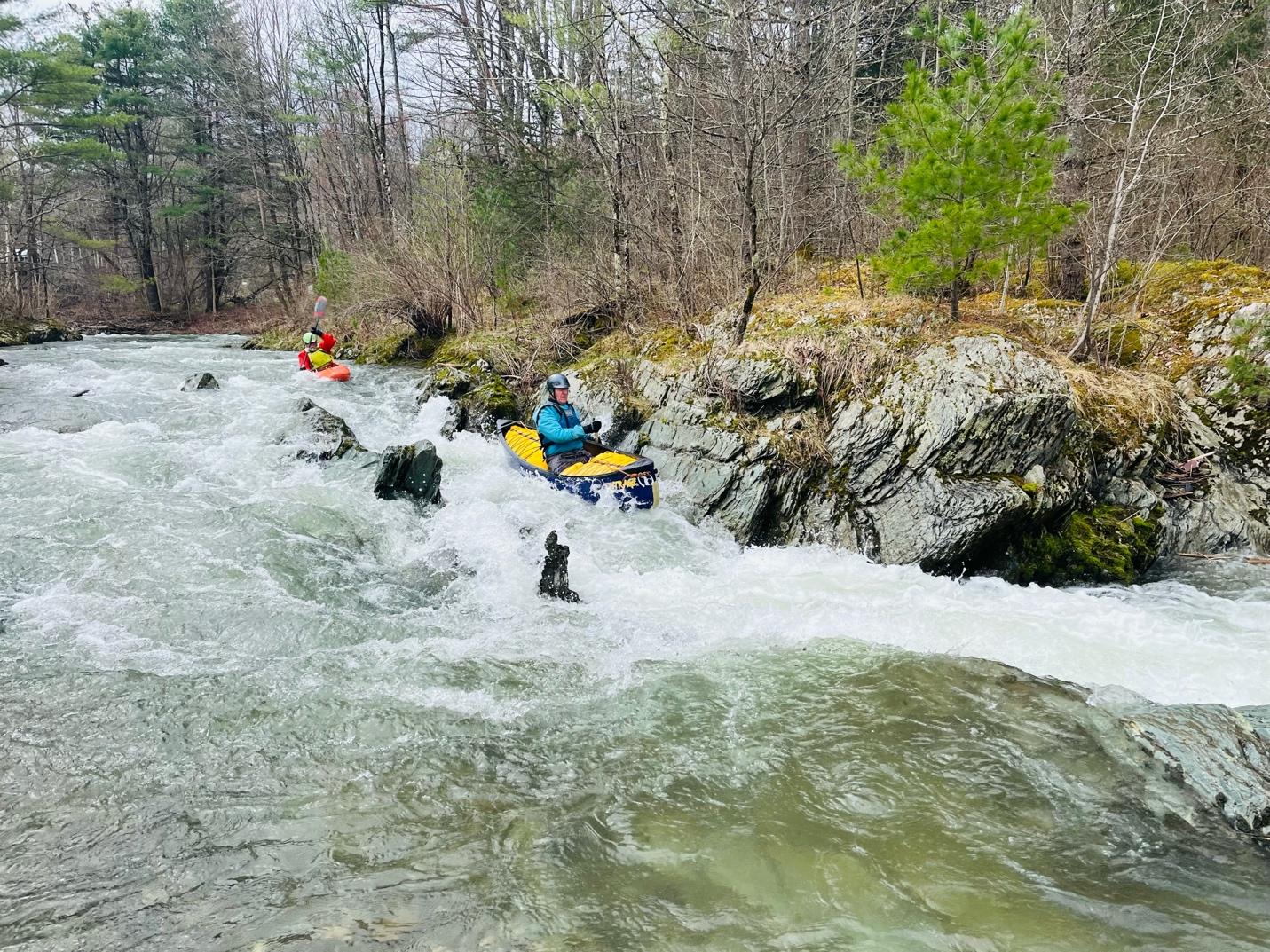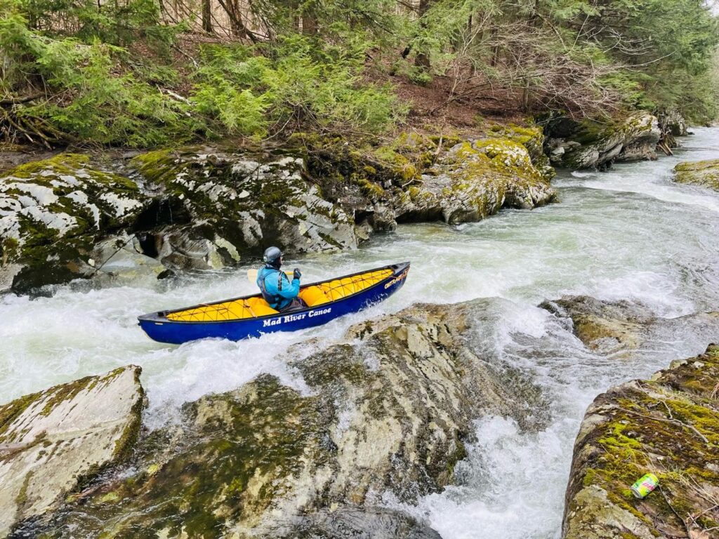 The first rapid in the gorge is Taste of Vermont (III). Taste of Vermont is a clean-narrow ledge-slide on river left. Again, like the other rapids on this run, look for wood which is common at the entrance and bottom of Taste of Vermont. There’s a large eddy on river right before the entrance that makes for easy wood scouting.